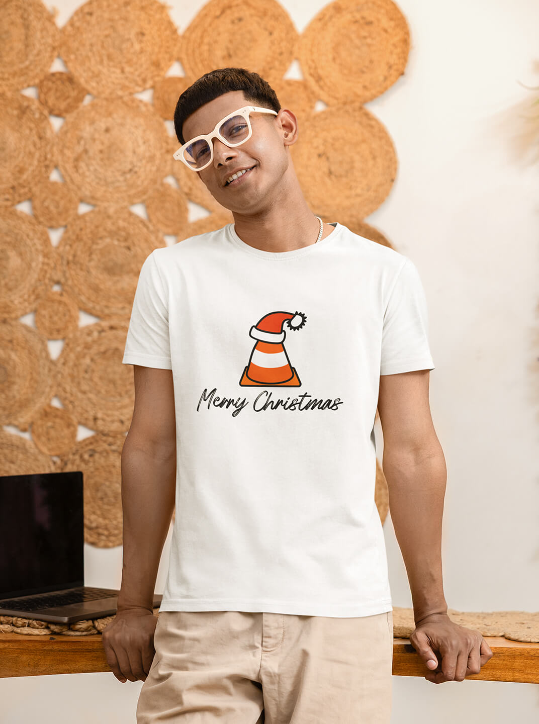 Cotton Merry Christmas Graphic T-Shirt for Men