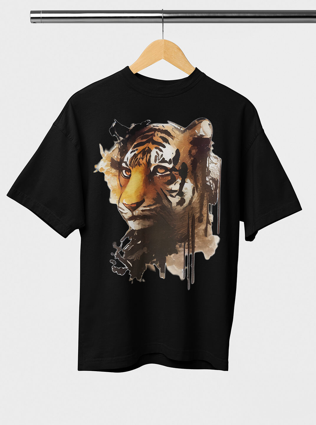 Cotton Oversize Graphic Verse Black Shirt with Tiger Print for Men
