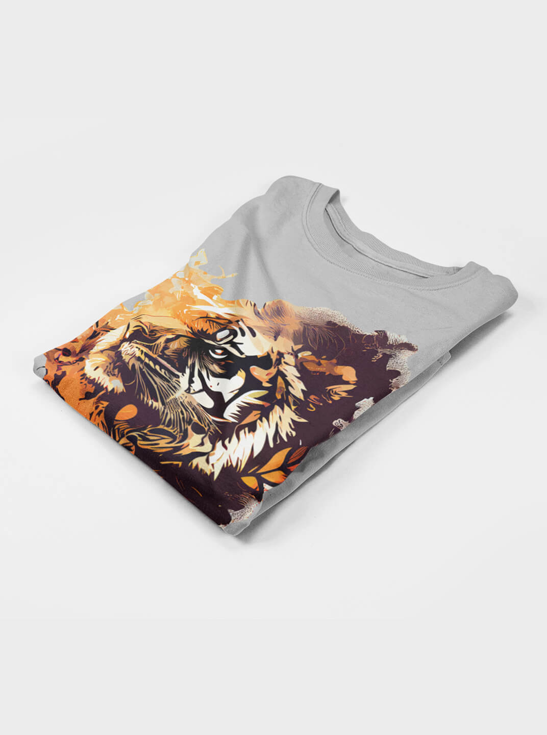 Casual & Streetwear Grey Tiger T Shirt for Men