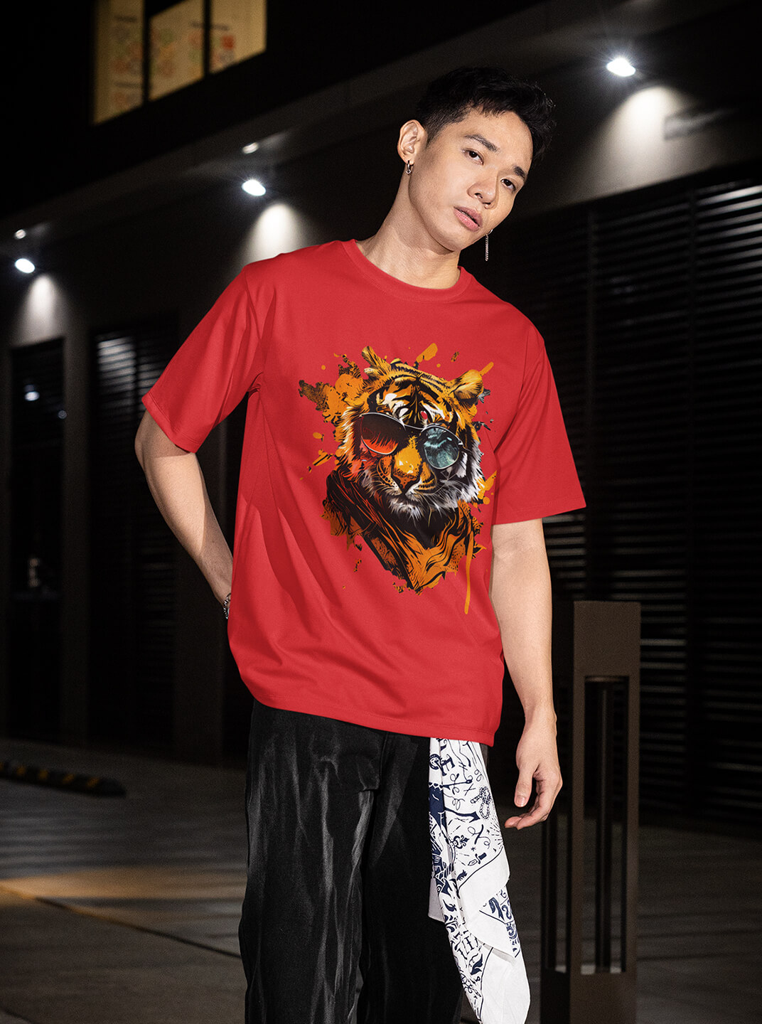 Multiverse Concept Brick Red Tiger Print T Shirt for Men