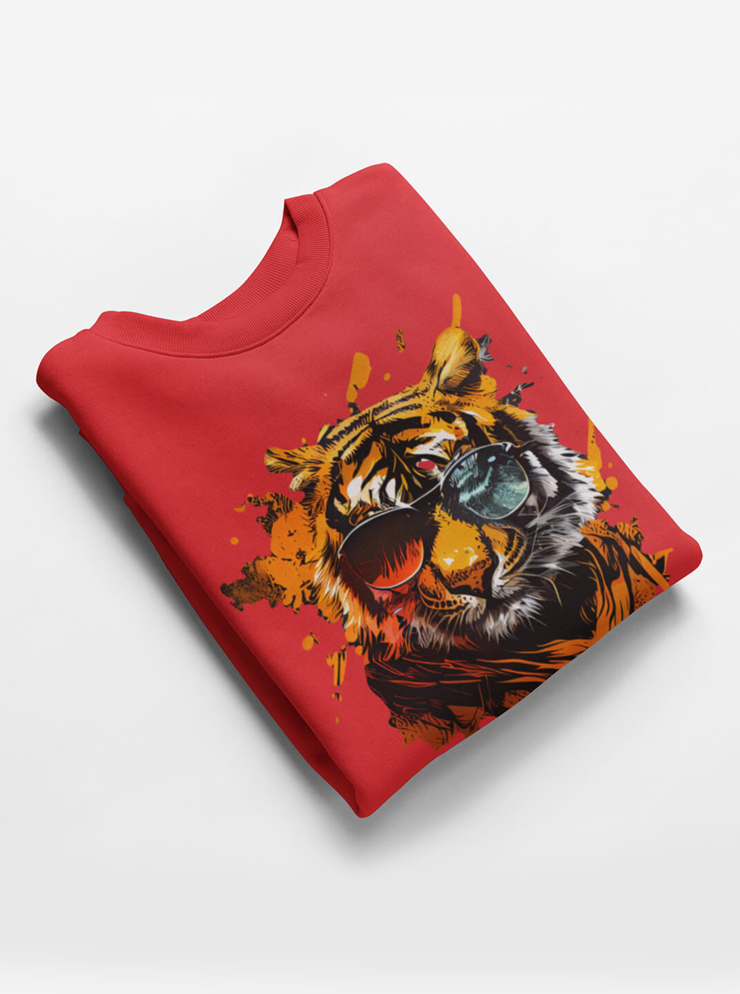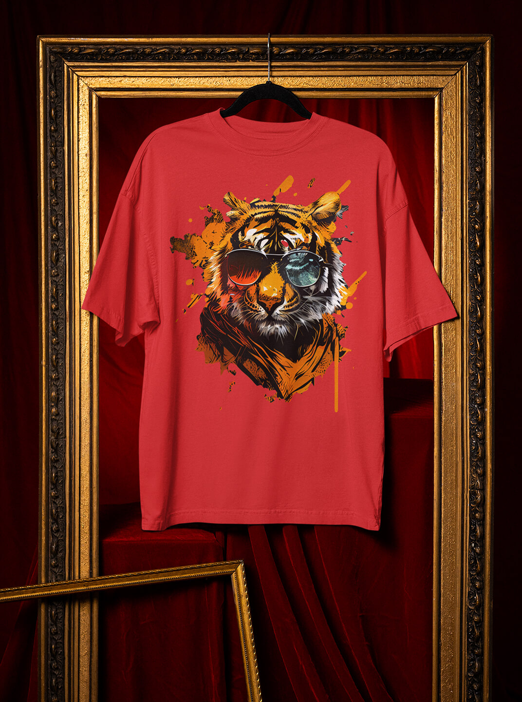 Bold Tiger Graphic Streetwear T Shirt in Brick Red