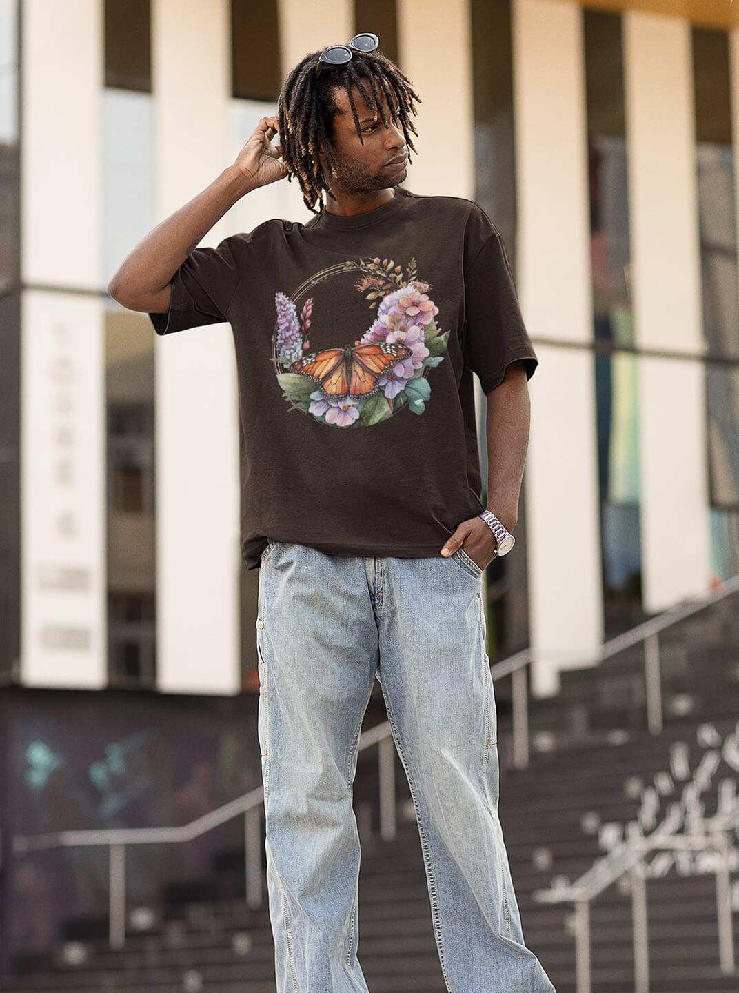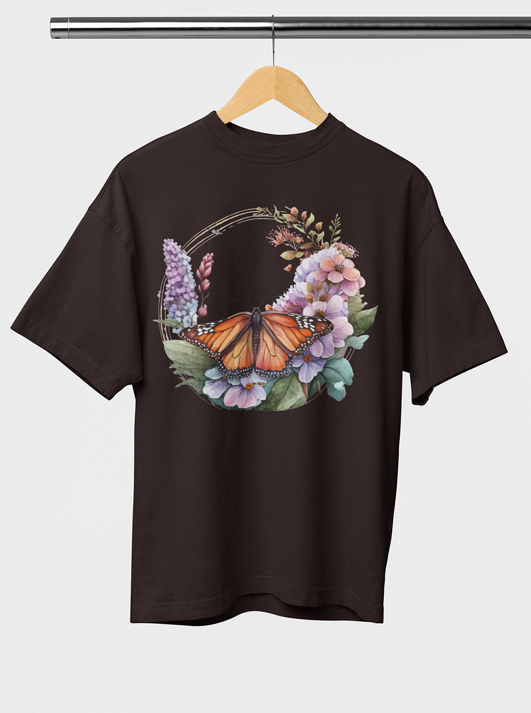 Premium Monarch Coffee Brown Color Butterfly Print T-Shirt – Floral Edition Graphic Verse